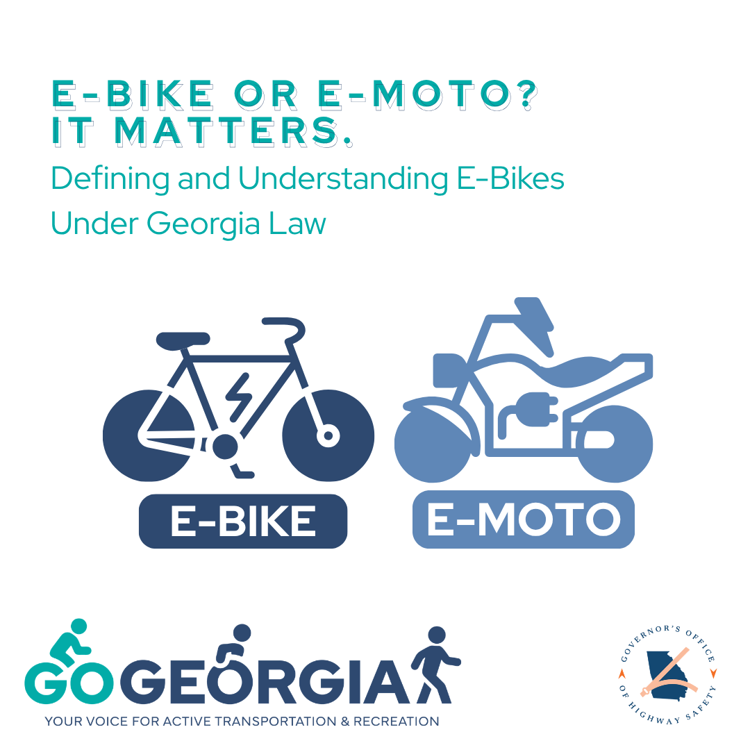 If it’s not an e-bike, then what is it? It’s essential for anyone interested in purchasing or operating a two-wheeled device on roads, bicycle facilities, or trails to understand the legal distinction between e-bikes and e-motos in the Code of Georgia.